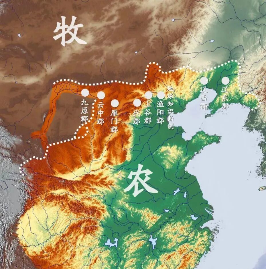 人类文明主要起源于亚欧大陆,喜马拉雅山脉和帕米尔高原将其一分为二,中国位于东端,地理上相对封闭。这是后来形成费孝通所说中华民族“滚雪球式”发展或赵汀阳所说中国历史“旋涡模式”或我所说的“一阴一阳之谓中国”的基本地理条件。因为地理、气候差异,这块空间内自然形成若干板块,以战国为界,以前是两个板块,农耕区与饲牧区;以后是三个板块,再加一个游牧区。